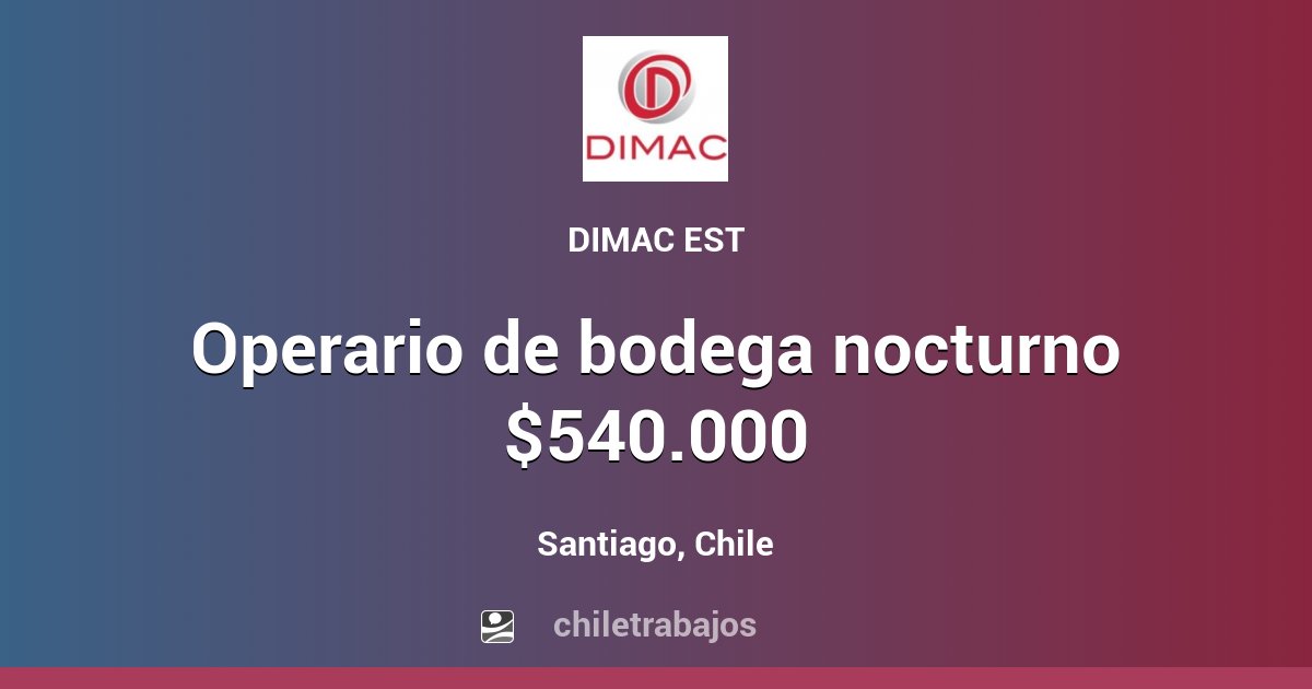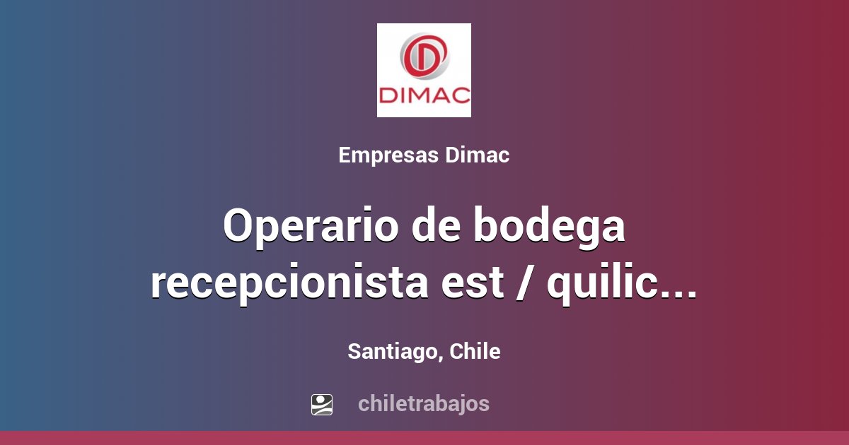 Profesión operario de bodega / operaria de bodega. Encontramos 30 ofertas de trabajo para operario bodega. Aplique fácilmente a 1.704 operario bodega ofertas de trabajo en chile en jobeka. Se necesita operario para bodega con licencia clase d vigente para empresa de refrigeración. Contrato a plazo, experiencia mínima de 1 año.